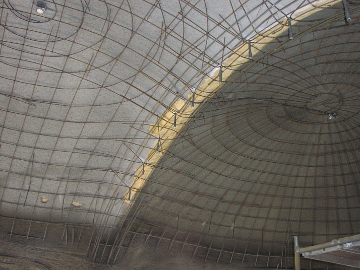 is sprayed with a thin coat of shotcrete. Its about 1/2" thick and