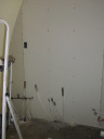 Figuring once we get the utilities in the small utility room we won't be able to get to the studs to put up the drywall so we worked our tails off over the weekend to get it up and pretty well mudded before the plumber begins his work.