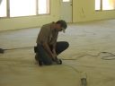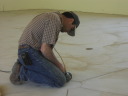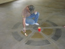 Dave hand brushes the design onto the floor. |