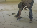 Dave cuts the design into the floor with a diamond grinder. |