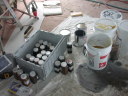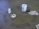 Now that the floor is dry and has had a quick sanding to knock off the ridges its ready for staining.