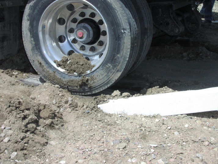 A railroad tie under the wheel helps